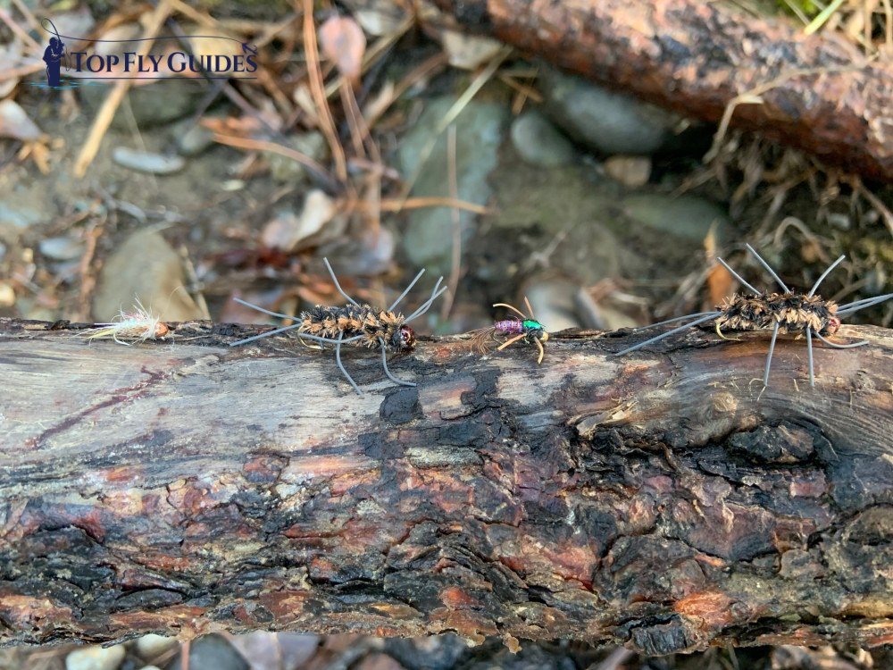 Leader setups vary with clarity. In clearer water, we use smaller beads and lighter fluorocarbon. As visibility drops, larger beads and heavier leader material become more effective. Stonefly patterns can also play a role when clarity is good or fish have seen less pressure.